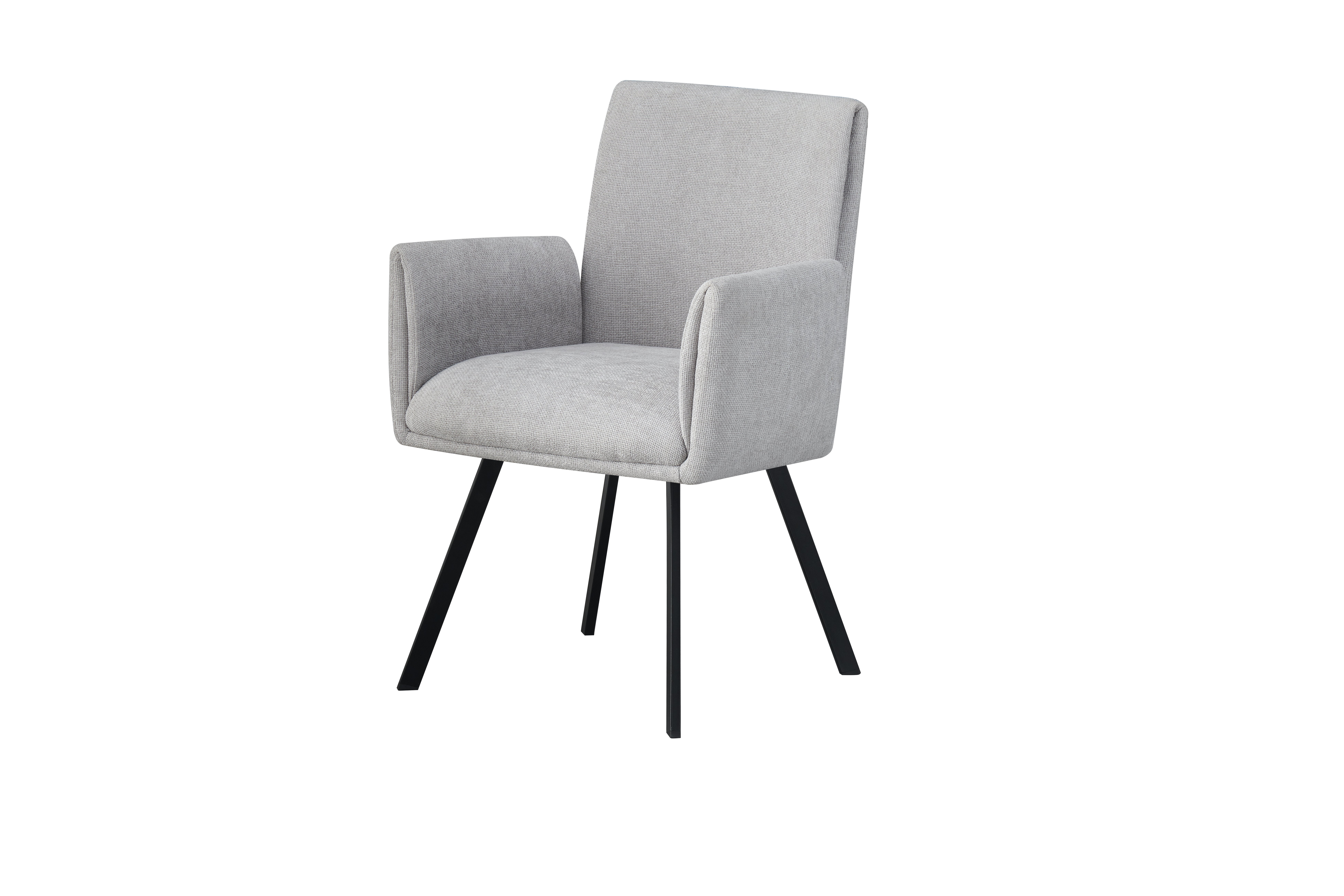 Eleve su espacio con este moderno sillón ergonómico , combinando la estética minimalista y la durabilidad industrial. Hecho a mano para la comodidad y el estilo, presenta tapicería de tela con tejido texturizado en el asiento y respaldo contorneado, combinado con patas de hierro con arena cónica para un elegante acabado mate.