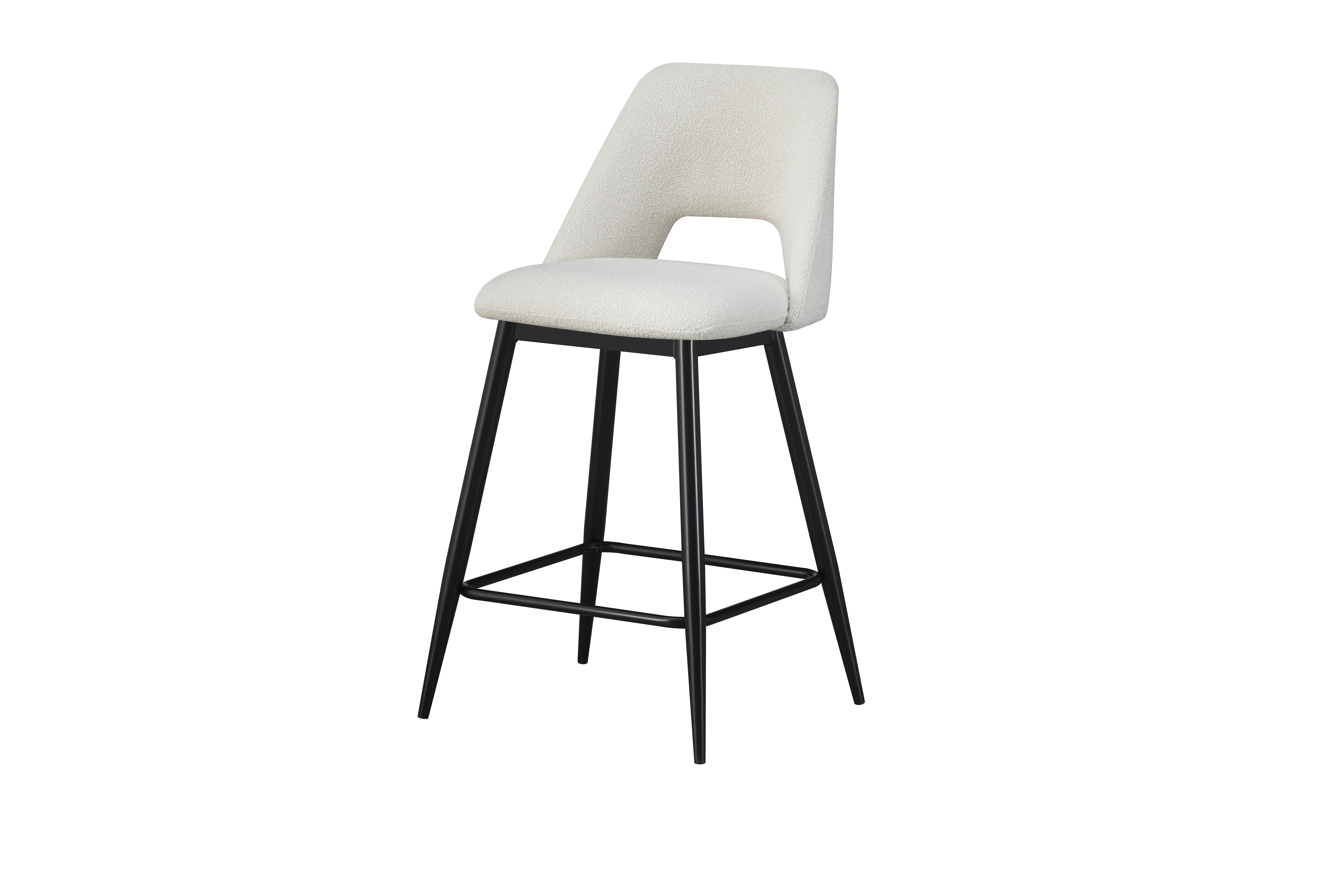 Diseñados para brindar durabilidad, el asiento y el respaldo cuentan con tela texturizada blanca , suave, resistente a las manchas y que contrasta visualmente con las patas negras. Las patas de hierro con recubrimiento en polvo negro del marco son resistentes a los arañazos y soportan el uso diario sin tambalearse. Esta combinación de lujo de silla de bar tapizada y materiales de calidad industrial garantiza que su silla conserve su belleza durante años.
