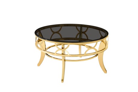 ✹ Elegante diseño circular : Esta mesa de centro de acero inoxidable con tapa de vidrio combina una tapa de vidrio templado gris ahumado (80 cm de diámetro) con un marco geométrico de acero inoxidable con estampado dorado: minimalista pero...