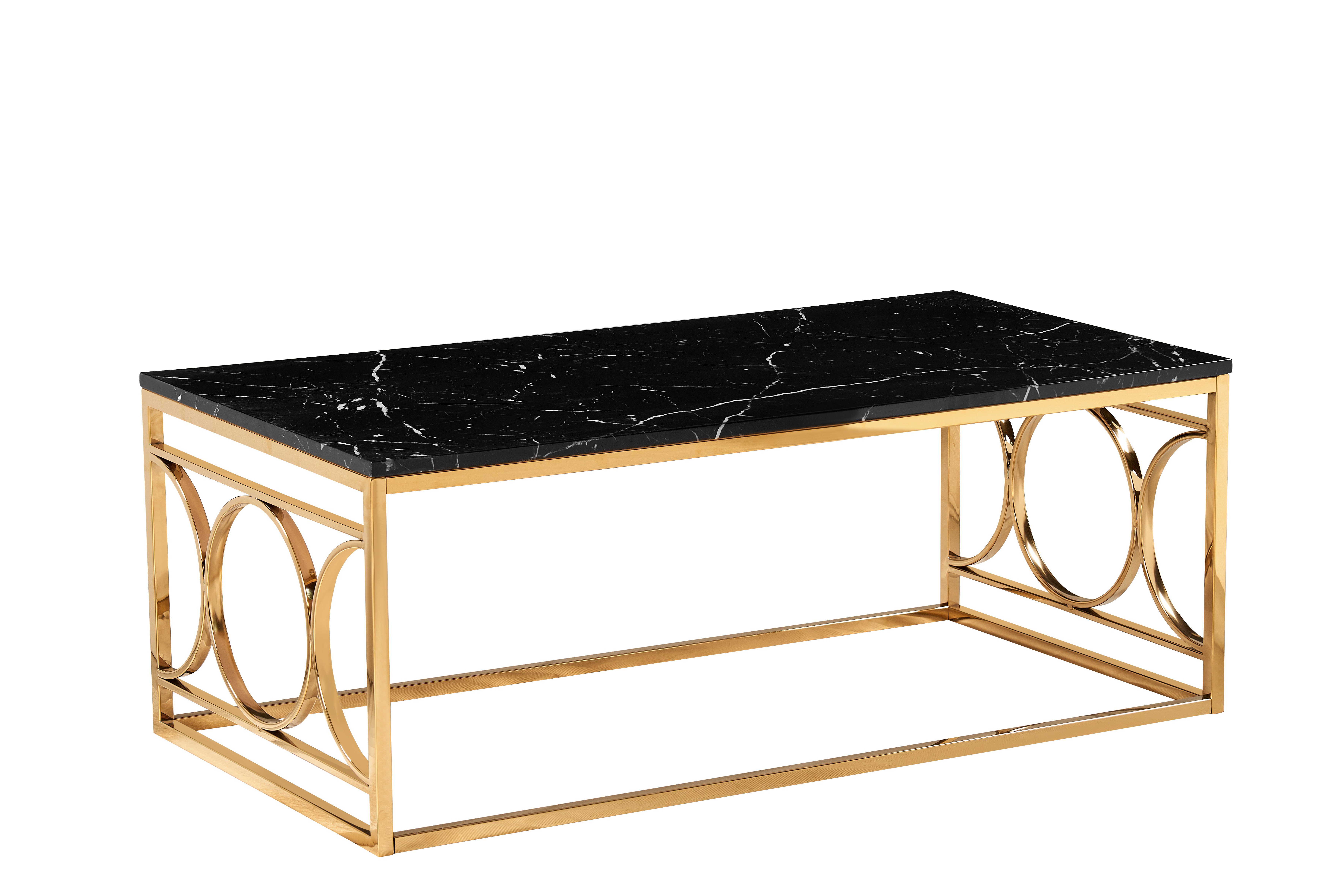 Mesa de centro con diseño de mármol negro y marco dorado