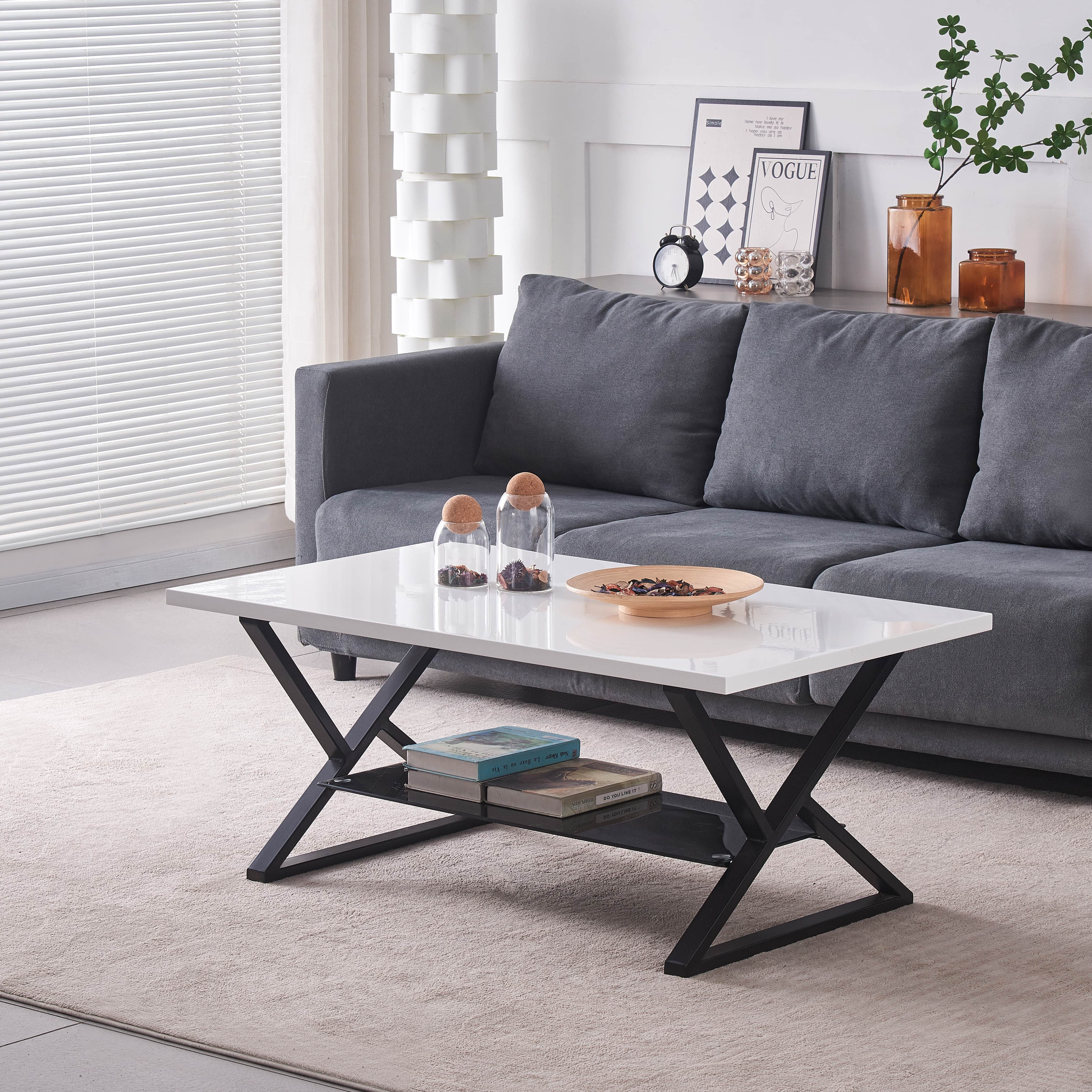Mesa de Centro de Mármol Blanco y Negro con Acabado de Alto Brillo