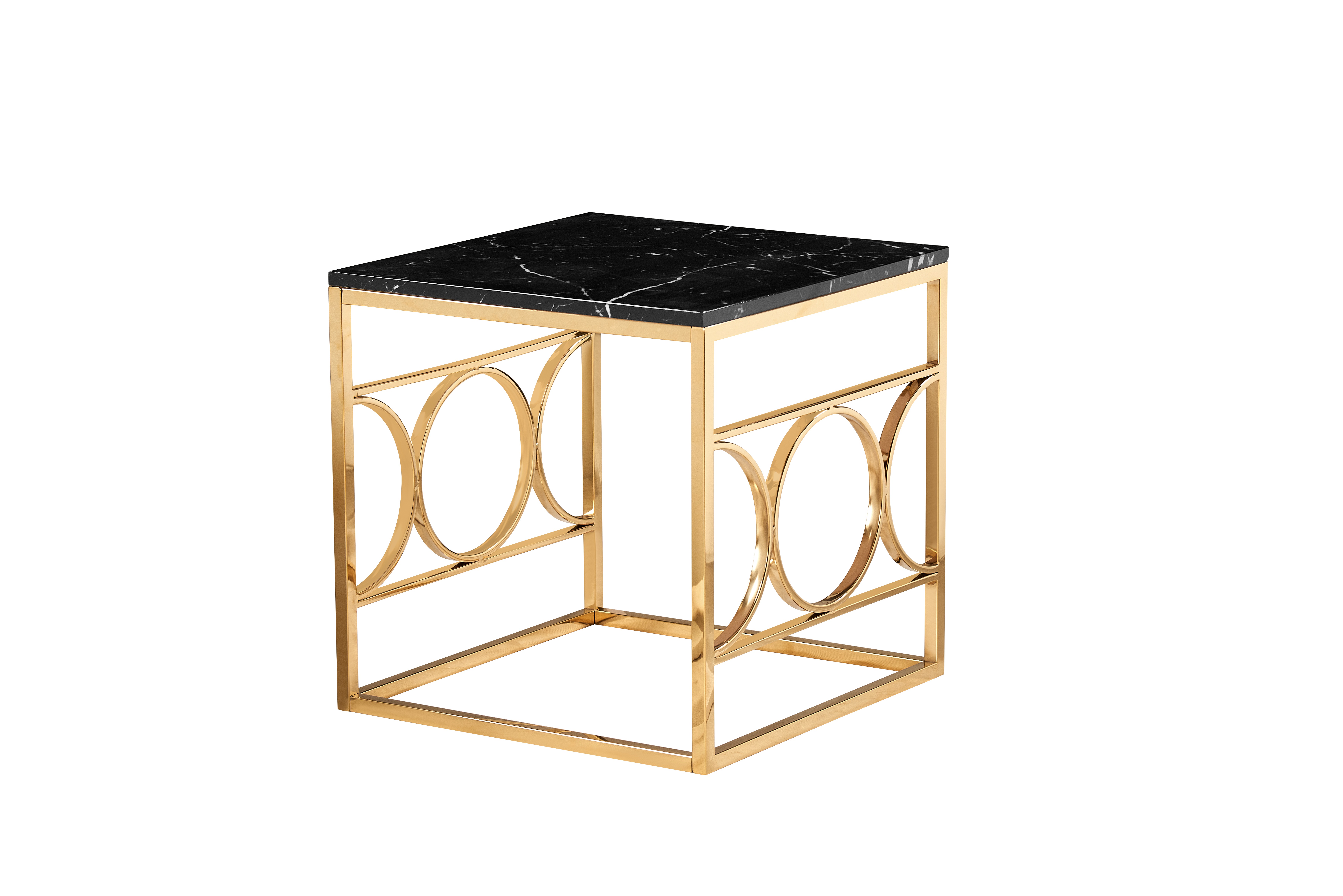 La mesa auxiliar con diseño de mármol negro y marco dorado es más que una simple pieza funcional; es una declaración de estilo y clase. Su diseño único le permite encajar perfectamente en las esquinas, lo que lo convierte en una excelente opción para maximizar el espacio en cualquier habitación. La mesa auxiliar con marco dorado no solo es visualmente atractiva sino también práctica, ya que ofrece una superficie estable para exhibir artículos decorativos, libros o incluso como un pequeño espacio de trabajo. Esta lujosa mesa esquinera de mármol negro es un complemento perfecto para cualquier hogar, oficina o entorno comercial donde se desee elegancia.