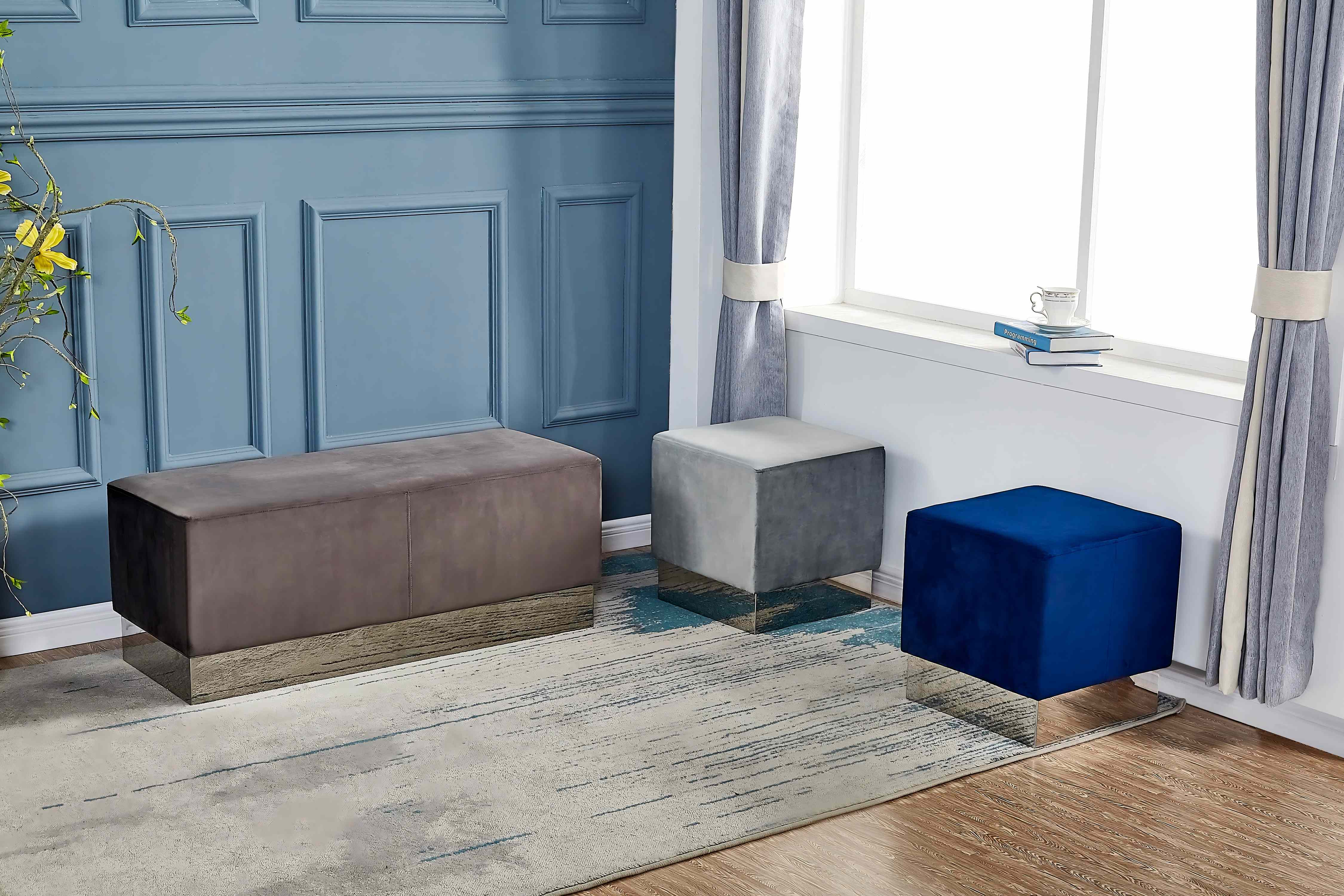 Juego moderno de banco y taburete de terciopelo con patas plateadas