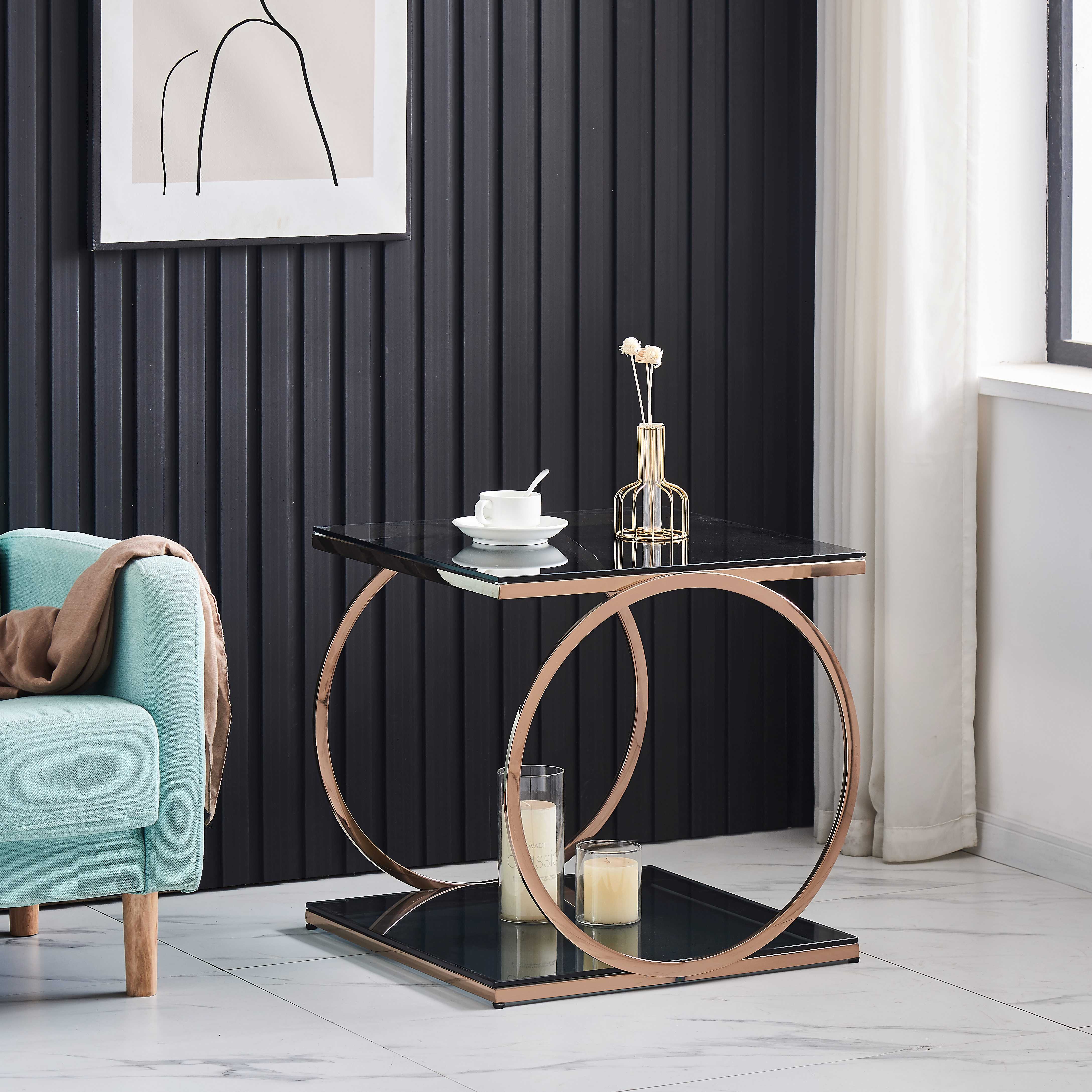 Descubra la mesa lateral de doble nivel de oro rosa, donde la elegancia moderna cumple con la funcionalidad inteligente. Diseñada para caber perfectamente en esquinas o espacios ajustados, esta mesa de cubo de 55 cm presenta dos elegantes niveles de vidrio templado para exhibir libros, decoración o velas, además de almacenamiento oculto para canastas o accesorios. La base de acero inoxidable entrelazado garantiza la estabilidad sin bambolear, mientras que el acabado de oro rosa agrega un toque de lujo que complementa cualquier estilo interior. Con vidrio brillante y texturas de metal cepillado, crea un juego de luz dinámico y profundidad visual. Fácil de limpiar con superficies resistentes a las huellas digitales, es tan práctico como hermoso. Perfecto para los pasillos, al lado de los sofás o en los rincones de lectura: eleva tu espacio con esta elegante mesa auxiliar multifuncional.