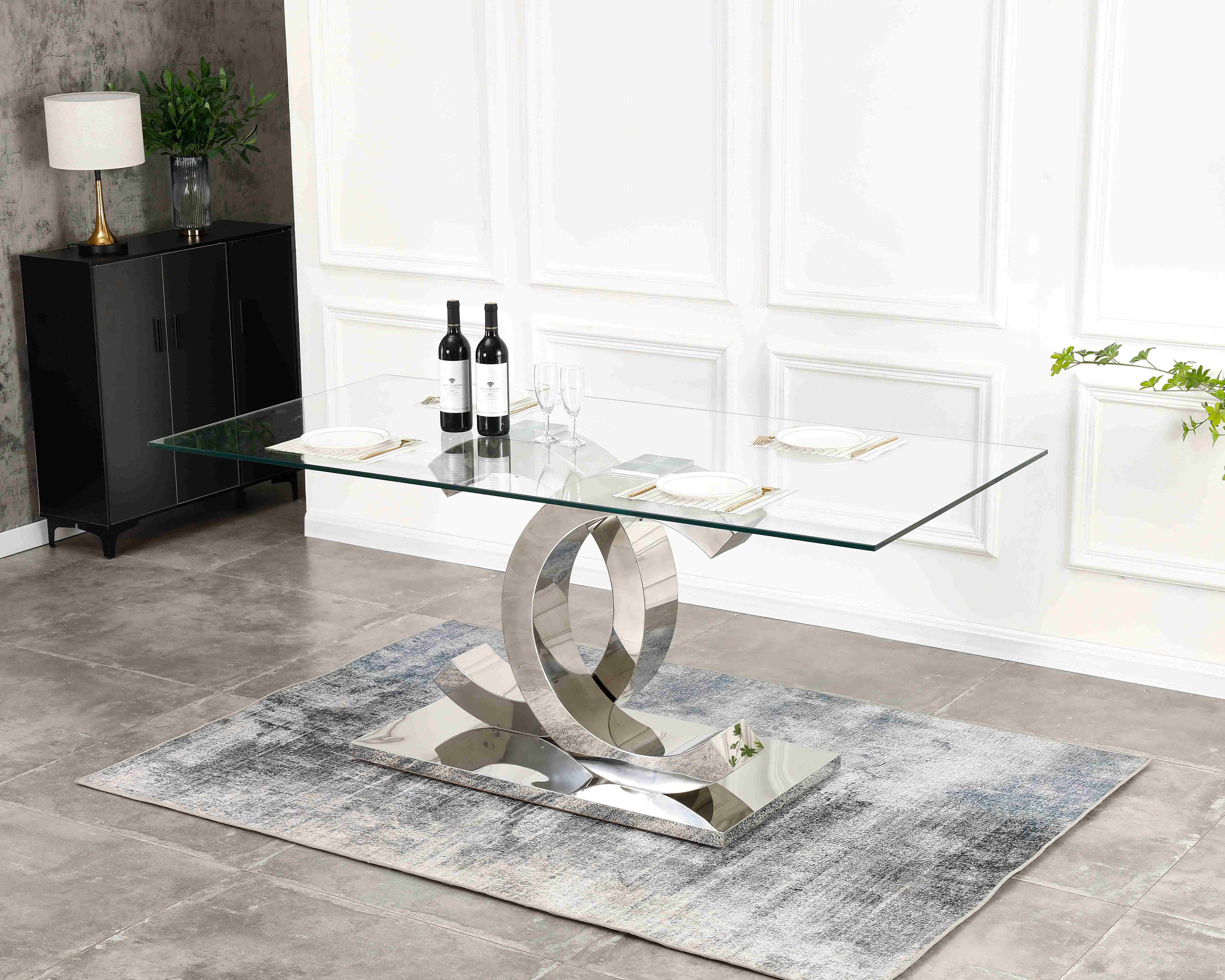 Descubra la combinación perfecta de estilo y fuerza con esta moderna mesa de comedor de vidrio de 180 cm con una elegante base de acero inoxidable plateado. Diseñado para espacios contemporáneos, su tapa de vidrio transparente templado de 10 mm ofrece resistencia a los arañazos y un aspecto claro, mientras que el marco de metal a prueba de óxido garantiza una durabilidad duradera. Con espaciosas dimensiones (180x90x75 cm), se sienta cómodamente de 6 a 8 personas, ideal para cenas familiares, invitados entretenidos o temas comerciales de comidas comerciales. El diseño minimalista con una base circular audaz agrega un toque artístico sin abarrotar su espacio, creando una sensación abierta y aireada. Fácil de limpiar y sin esfuerzo, esta mesa se adapta a los interiores modernos, industriales o escandinavos, lo que lo convierte en una pieza central versátil para casas, restaurantes o apartamentos loft.