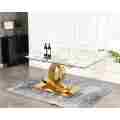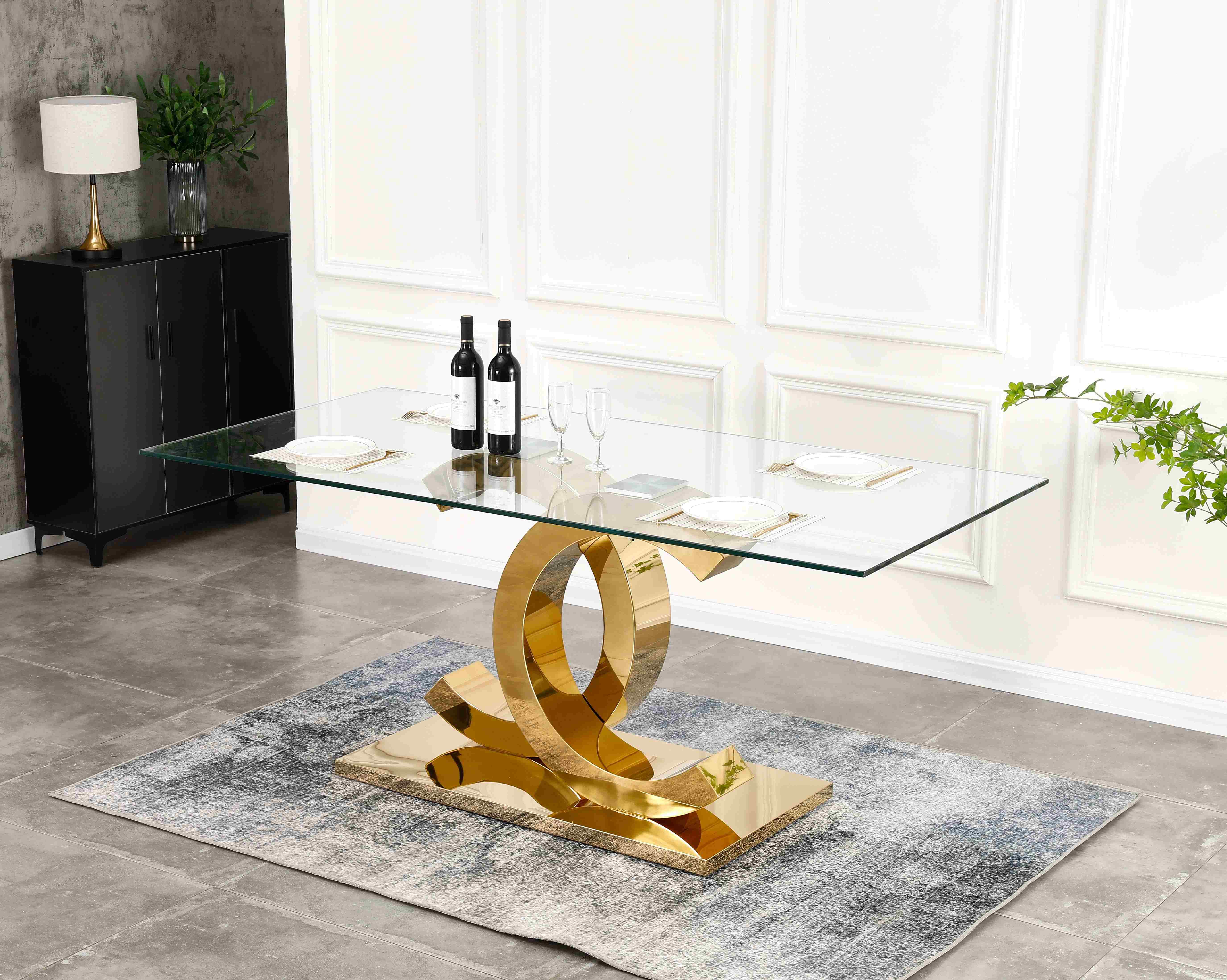 Eleve su espacio con esta impresionante mesa de comedor de vidrio moderna de 180 cm con una elegante base de acero inoxidable dorada. Diseñado para el estilo y la fuerza, la parte superior de vidrio transparente templado de 10 mm resiste arañazos y manchas, mientras que el marco de metal a prueba de óxido garantiza la estabilidad duradera. Con espaciosas dimensiones de 180x90x75 cm, asienta cómodamente 6–8 personas, perfecta para cenas familiares o invitados entretenidos. La mesa transparente crea una sensación aireada y abierta, mientras que la audaz base circular agrega un toque artístico sin abarrotar la habitación. Ya sea en un hogar moderno, café o apartamento loft, esta mesa se mezcla sin esfuerzo en interiores escandinavos, industriales o minimalistas. Sin esfuerzo para limpiar y construir para durar, es la fusión perfecta de forma, función y elegancia contemporánea.