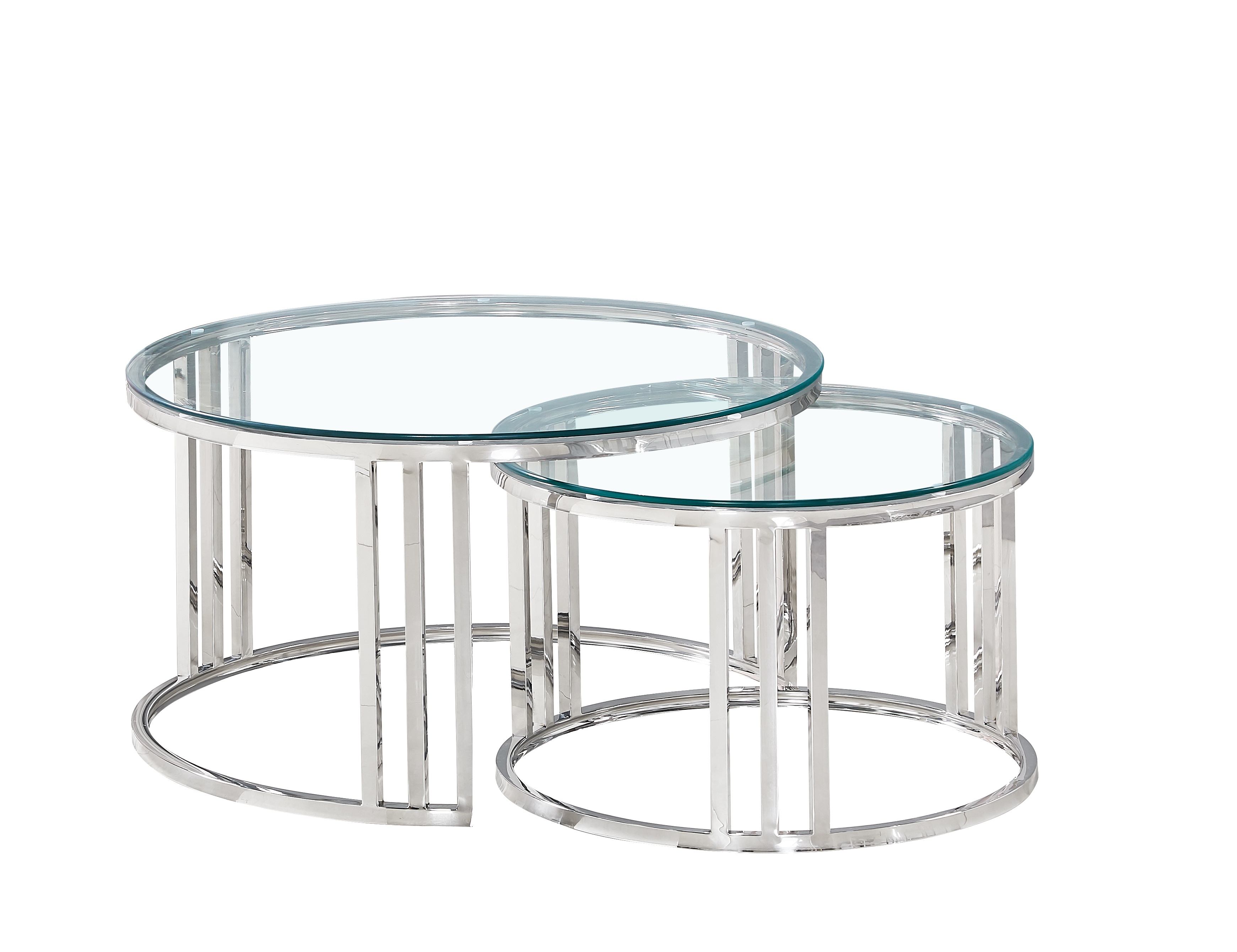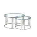 Transforme su espacio con estas elegantes mesas de anidación de vidrio, con un diseño apilable que se adapta sin esfuerzo a cualquier diseño de habitación. La mesa más grande de 80 cm de diámetro se toca perfectamente sobre la más pequeña de 60 cm, que ofrece funcionalidad flexible para apartamentos, salas de estar o como compañeros del lado del sofá. Hecho a mano con tops de vidrio templado resistente a los rasguños de 8 mm y bordes pulidos, cada superficie ofrece claridad y durabilidad clara de cristal. Un marco plateado moderno hecho de acero inoxidable pulido agrega brillantez similar a un espejo, mientras que el acabado resistente a las huellas digitales garantiza un fácil mantenimiento. Con un diseño estético y atemporal neutral, estas tablas se mezclan sin problemas en cualquier decoración, desde habitaciones acogedoras hasta entradas. Construido para durar, no son solo hermosos, están construidos para la vida cotidiana.