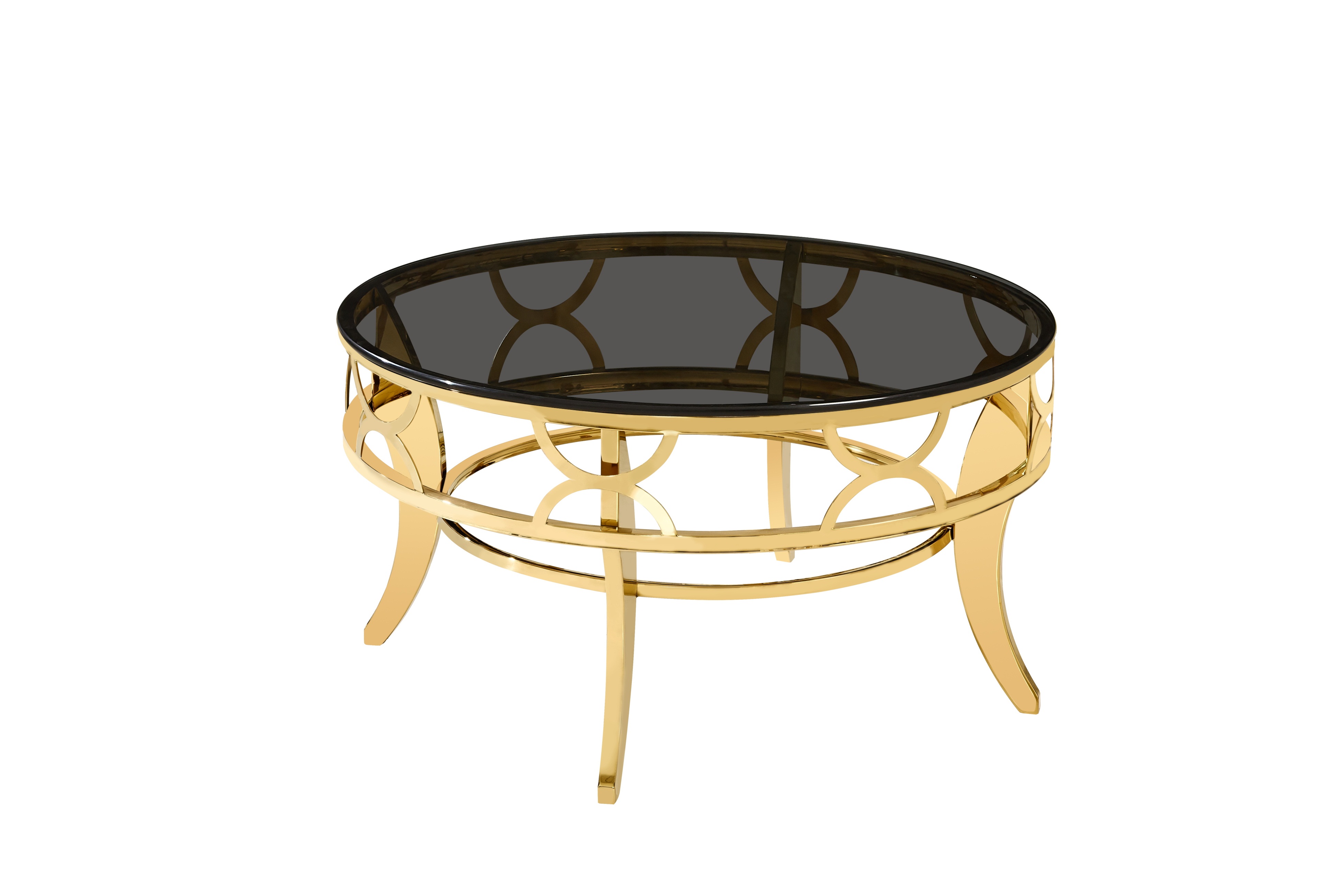 Eleve su espacio con esta moderna mesa de café de lujo, con una tapa de vidrio gris ahumado resistente a los rasguños de 8 mm que difunde suavemente la luz, combinada con una base de acero inoxidable electrochado de oro escultural para glamour industrial. Compacto pero llamativo (DIA80XH45cm), es perfecto para pequeñas salas de estar o áreas de salón, estilo y funcionalidad. El vidrio resistente al calor y el acabado de oro a prueba de óxido aseguran una durabilidad duradera, mientras que las superficies resistentes a las huellas digitales hacen que la limpieza sea muy fácil. Personalice el color y el material de la parte superior y el marco para que coincida con su gusto único. Una pieza central versátil que trae fluidez, apertura y elegancia refinada a cualquier interior, desde minimalista hasta ecléctico.