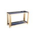 ✨Slim y Stylish Almacenamiento: esta mesa de consola de oro de lujo con estantes de vidrio grises ahumados dobles combina encanto industrial y elegancia moderna. El marco de la cuadrícula dorada agrega un toque geométrico brillante, mientras que el diseño compacto de 123 × 43 × 78 cm se adapta perfectamente al lado de los sofás, en las entradas o contra las paredes del dormitorio. Perfecto para espacios pequeños: libros, decoración o elementos esenciales mientras mantiene su aspecto pulido. Gold Steel de oro y vidrio ahumado = sofisticación instantánea para cualquier habitación moderna o inspirada en escándolos.