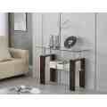 Transforme su espacio con nuestra tabla de consola de cuadros personalizable, donde la elegancia moderna cumple con el diseño práctico. Con un top de vidrio templado transparente de 8 mm para seguridad y resistencia a los rasguños, más un estante inferior de arena de 5 mm para difusión de luz suave, esta mesa combina estilo y función. Elija entre marcos MDF de alto brillo en oro, plata, gris o nogal, o actualizar con películas decorativas para un toque personalizado. A 110L × 40W × 79H CM, su perfil delgado se adapta perfectamente a las entradas, salas de estar o al lado de su sofá, ofreciendo almacenamiento de doble nivel para llaves, correo, fotos o decoración. Ya sea que esté creando una primera impresión elegante o agregando espacio de superficie a su salón, esta mesa de consola es una declaración audaz. Fácil de limpiar, duradero y diseñado para que coincida con su estilo único: alevate su hogar hoy.