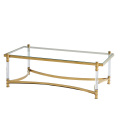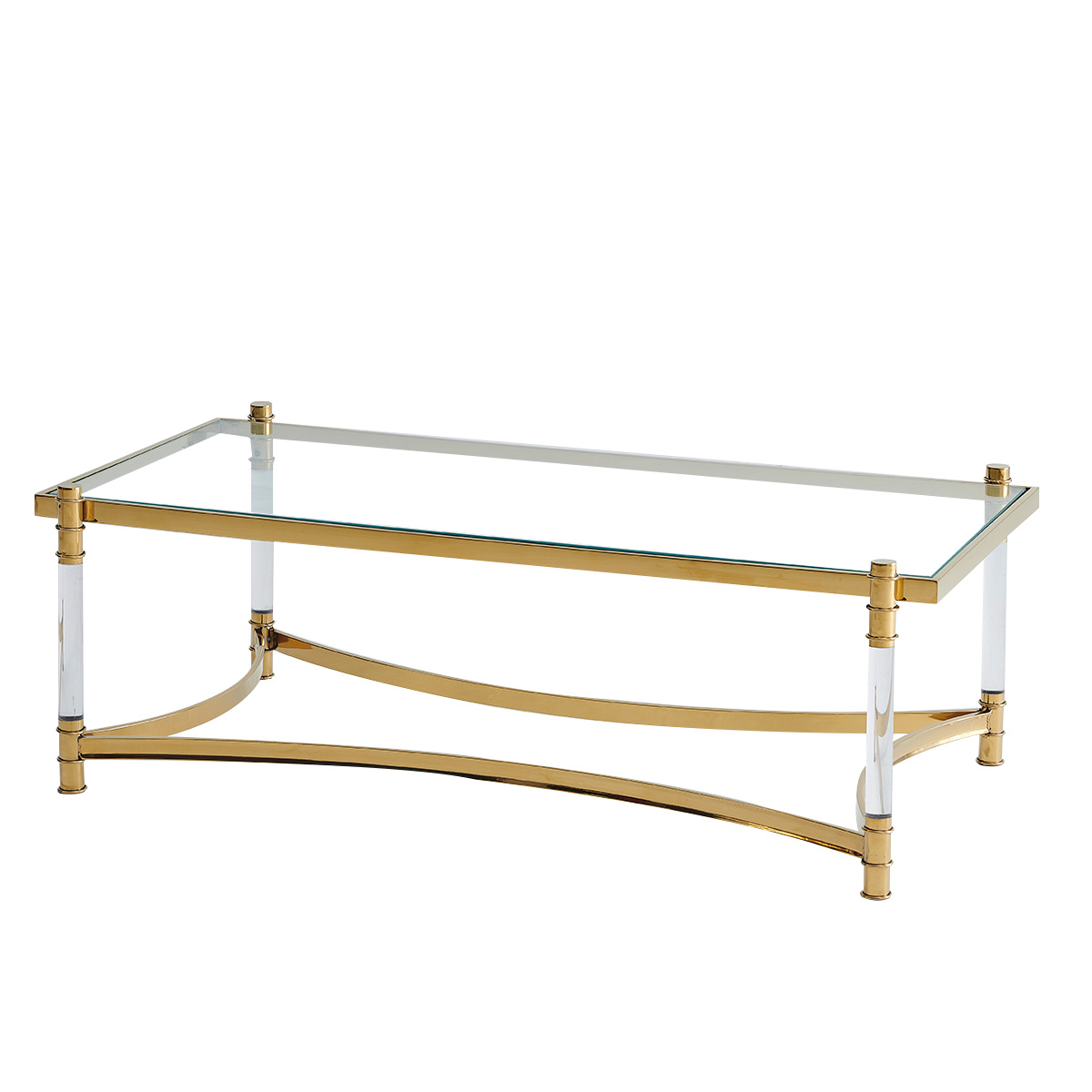 Eleve su espacio vital con esta moderna mesa de café de acero inoxidable de acero inoxidable de vidrio elegancia, con una mesa de vidrio templado transparente, un marco de acero de oro pulido y patas acrílicas elegantes con acentos con punta de oro. A 120 x 60 x 42 cm, ofrece una amplia superficie para decoración, bebidas o libros mientras mantiene un aspecto contemporáneo y de bajo perfil perfecto para interiores modernos. Esta mesa de café de lujo, duradera, elegante y inteligente, combina un diseño minimalista con glamour metálico, ideal para hogares o espacios comerciales que buscan sofisticación atemporal.