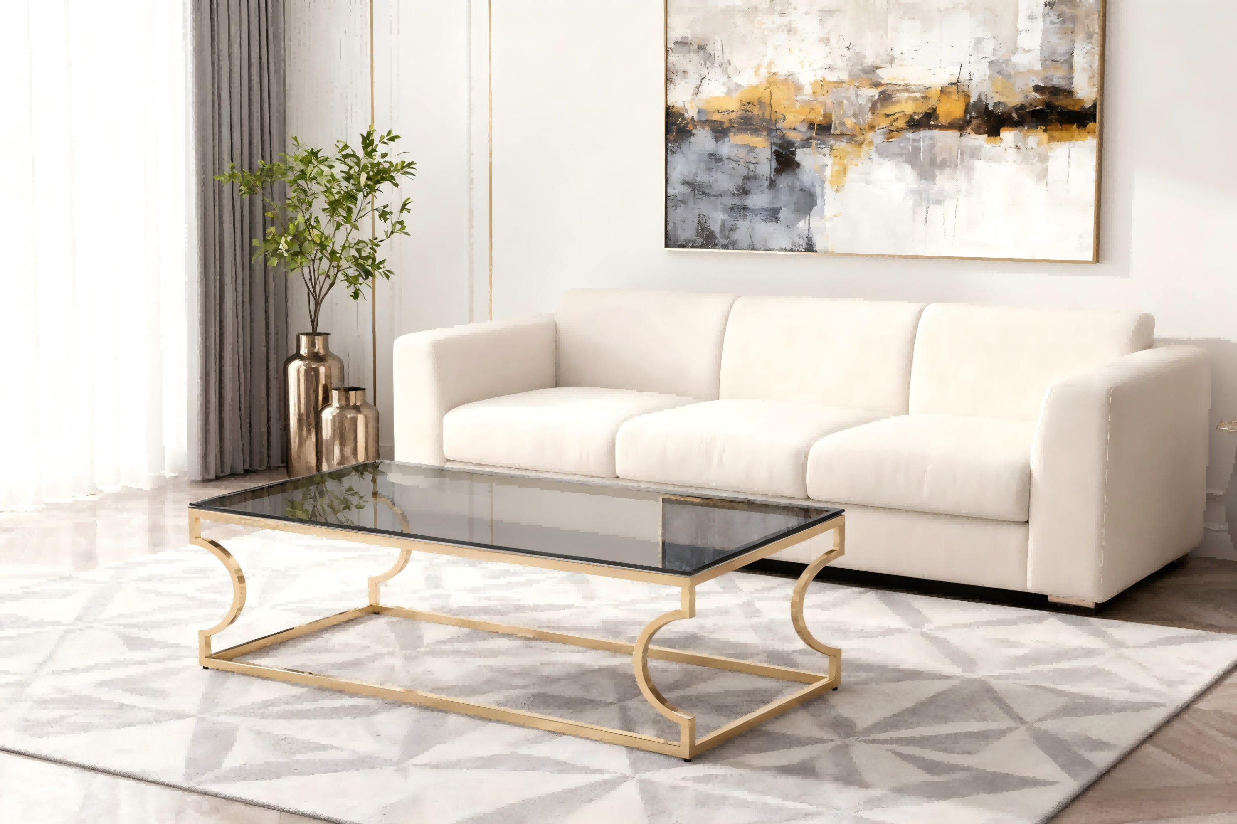 ✨ Eleva tu espacio con esta moderna mesa de centro de acero inoxidable que cuenta con una elegante tapa de vidrio gris resistente a rayones de 8 mm y un artístico marco galvanizado en oro. Su diseño transparente mantiene la habitación aireada, mientras que su tamaño compacto encaja perfectamente en espacios pequeños, ideal para salas de estar, salones o interiores minimalistas. La estética industrial-chic combina sin esfuerzo con una decoración moderna, glamorosa o de transición, ofreciendo sofisticación y practicidad. Fácil de limpiar, con acabados resistentes a las huellas dactilares, es tan funcional como elegante. Una mesa de centro de lujo que transforma cualquier habitación en un santuario cuidado. #VidaModerna #DiseñoDeMesa De Café #EleganciaInterior