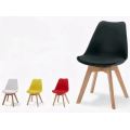 Silla de comedor acolchada de PP rosa BR-24PC08 con patas de madera maciza - Diseño de fácil montaje